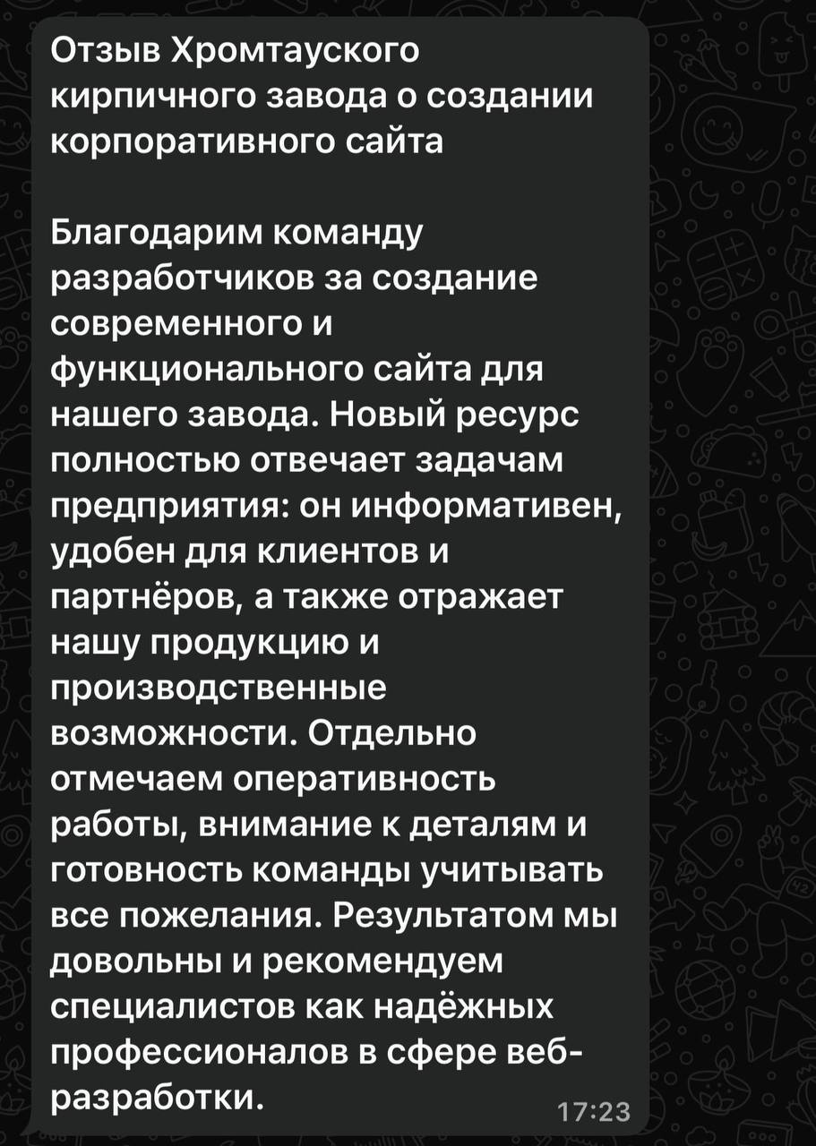 Мы ценим обратную связь и используем её, чтобы совершенствовать процесс и результат.
